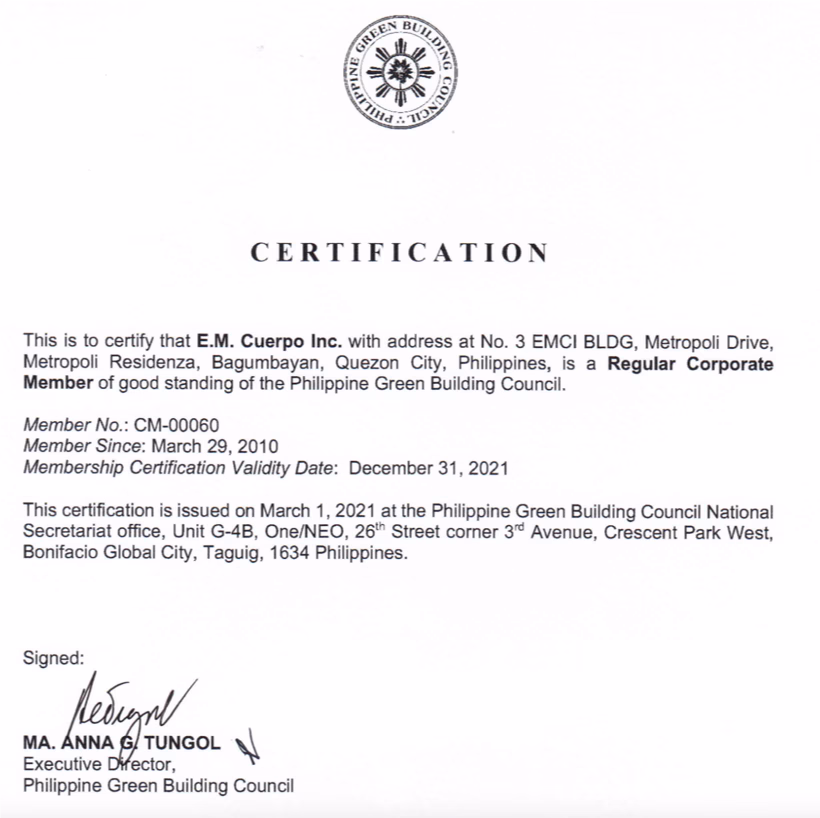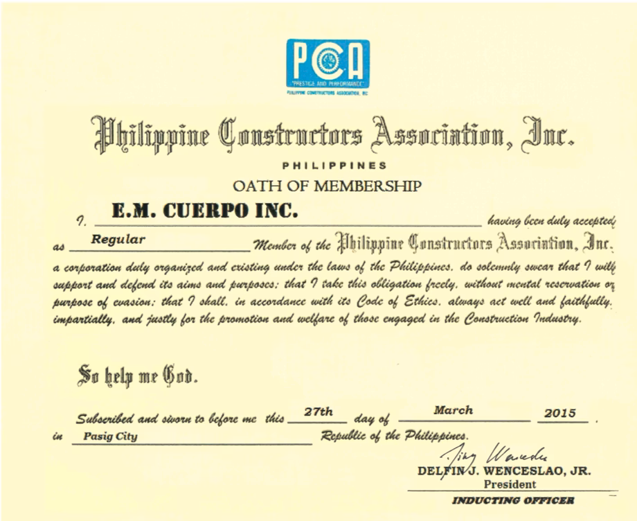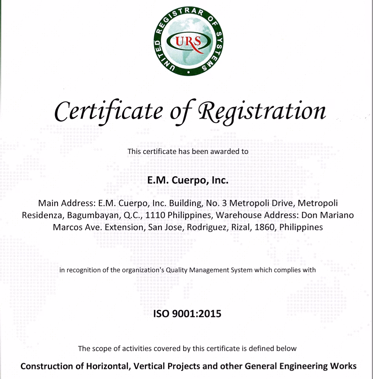 E.M. Cuerpo, Inc., headed by its President and Chief Executive Officer, Arch. Celerino S. Cuerpo, was incorporated and registered with the Securities and Exchange Commission (SEC) on July 26, 2001. The company was established primarily to provide and undertake general building construction and other related services. Currently, the company specializes in infrastructure projects such as general building, steel fabrication, construction, and development of real properties. Since its humble beginnings, E.M. Cuerpo, Inc. has consistently strived for excellence in workmanship and efficiency in delivering high quality projects to its clients, from both the government and private sector. In 2019, the company was awarded the prestigious “AAAA” Contractor License, the highest rating for contractors issued by the Philippine Contractors Accreditation Board (PCAB).